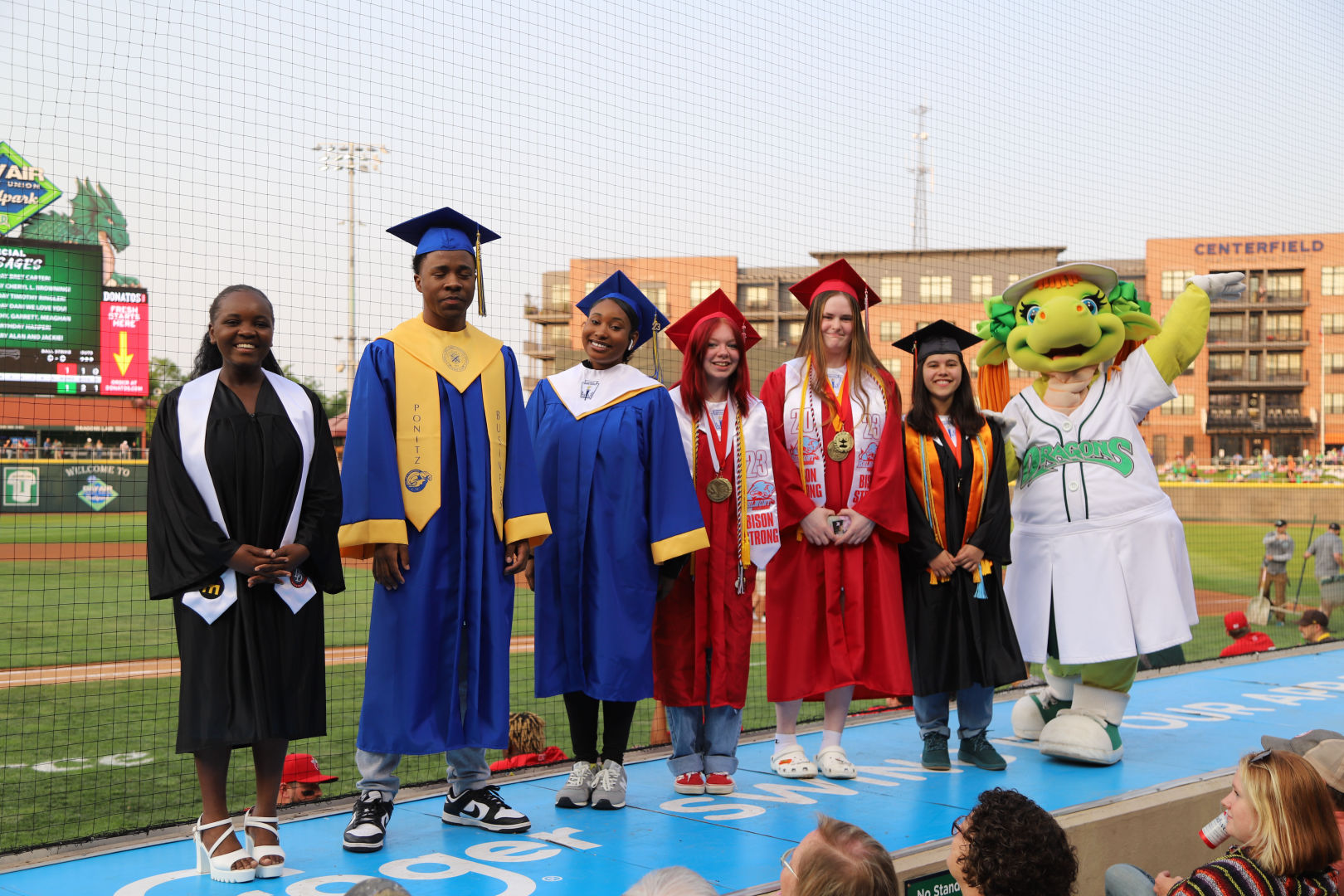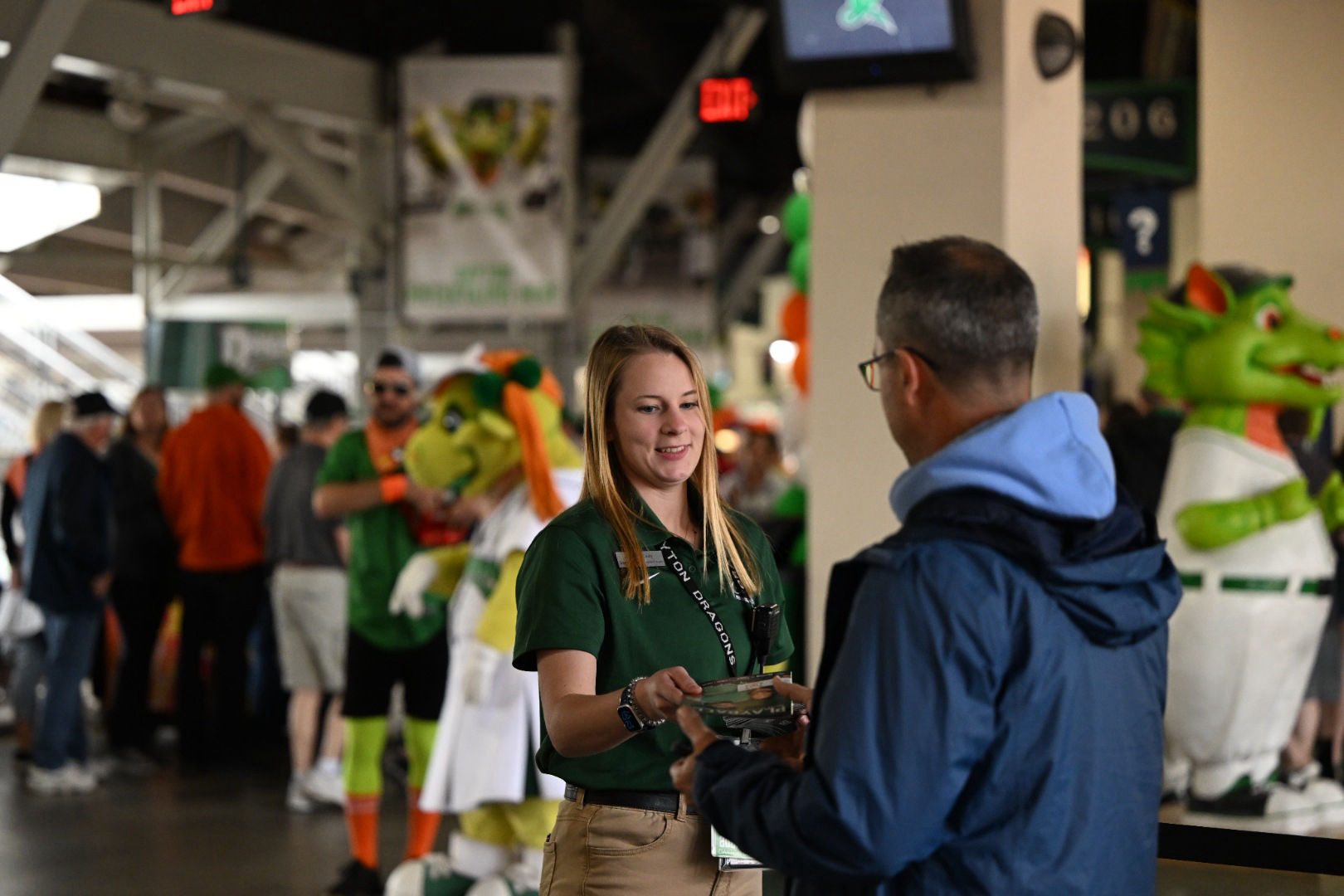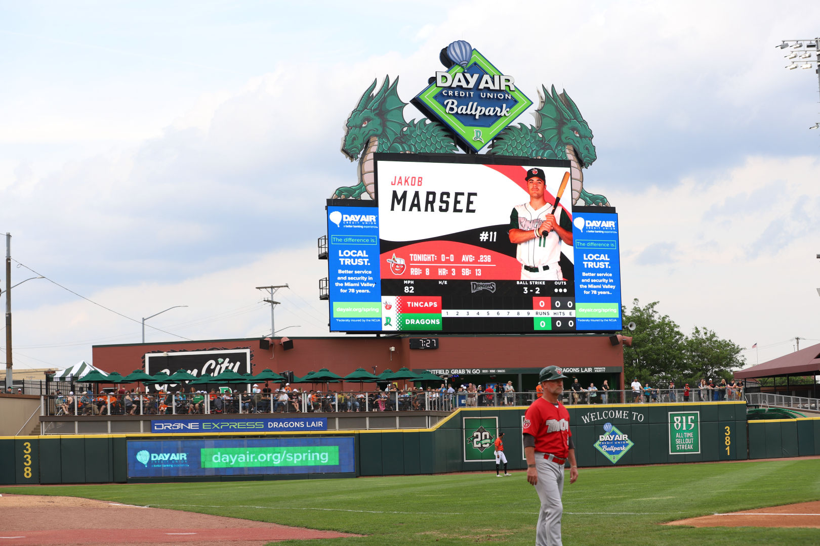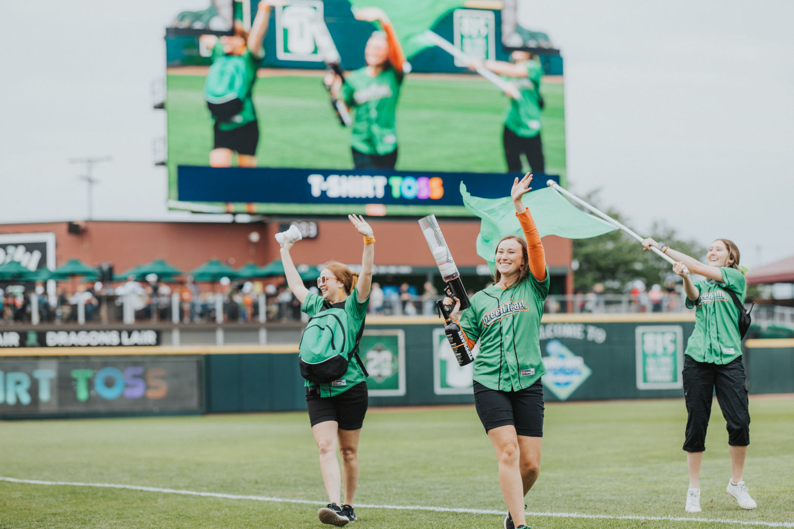 Upon entering the stadium, fans are immediately greeted by an inviting and wonderful barrage of sights, sounds, and smells. From our playful mascots and engaging videos to delicious concessions and exciting music, every fan is pulled into one of the best family entertainment experiences in the country. For the first time since 2019, the Dragons Green Team and mascots were able to take the field on a regular basis for in-game entertainment.