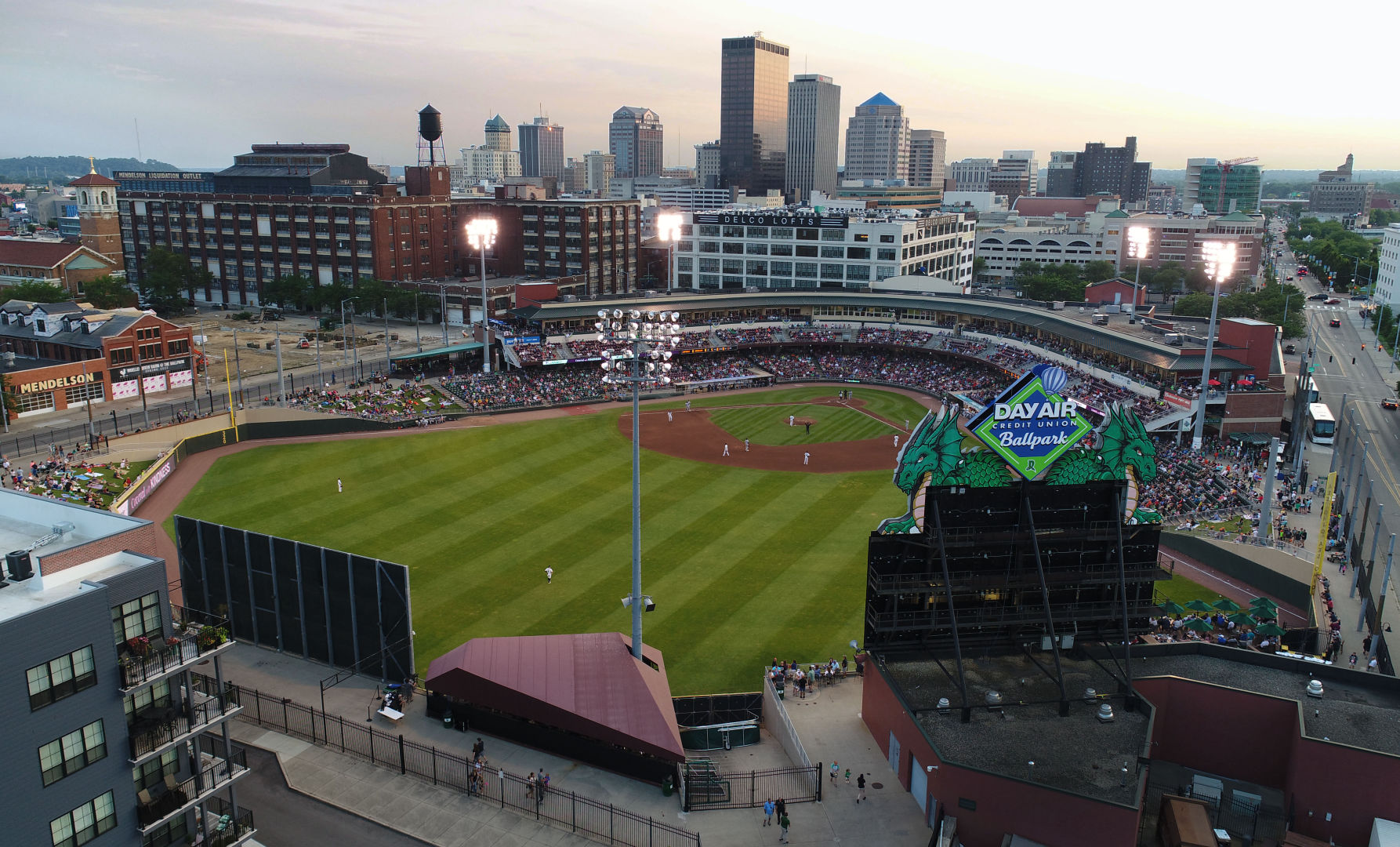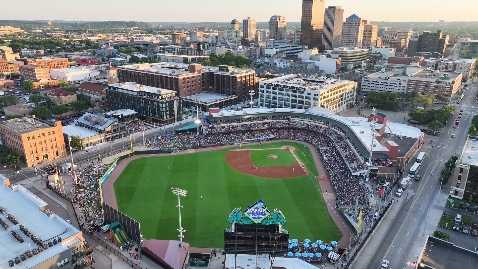 Since the first pitch was thrown on April 27, 2000, over 3 billion dollars in development has transformed the area immediately surrounding Day Air Ballpark into the beautiful Water Street District we enjoy today!